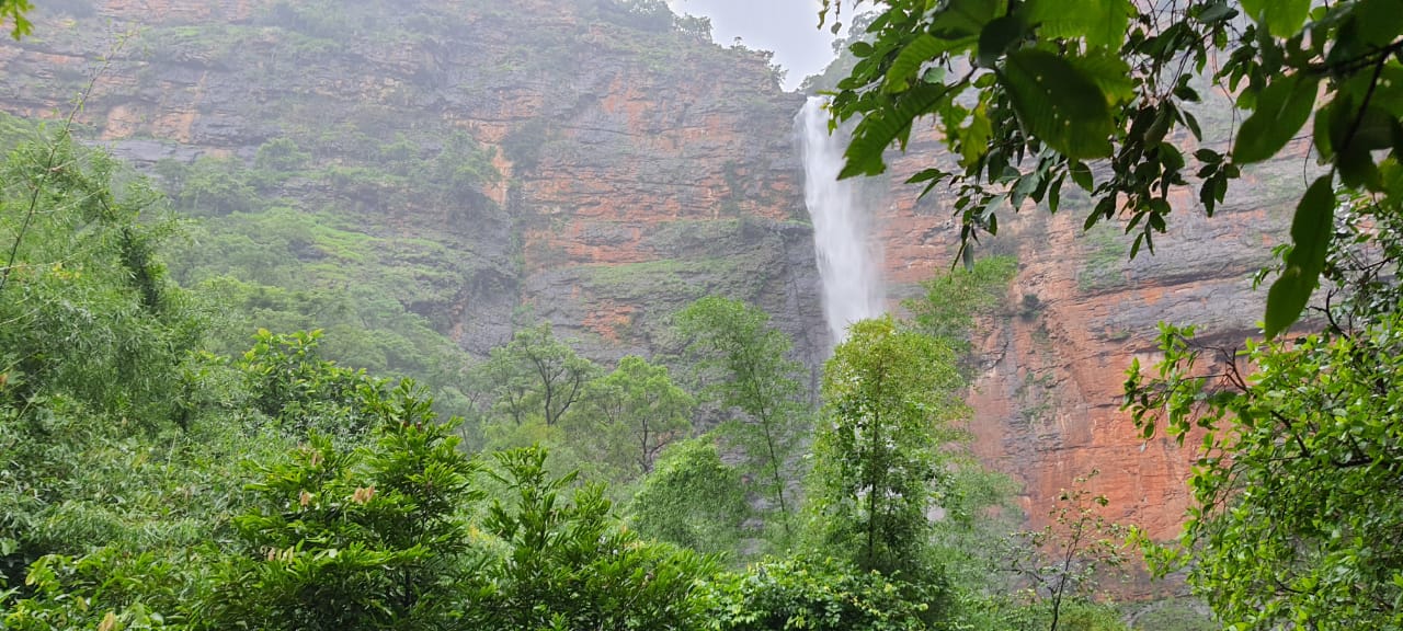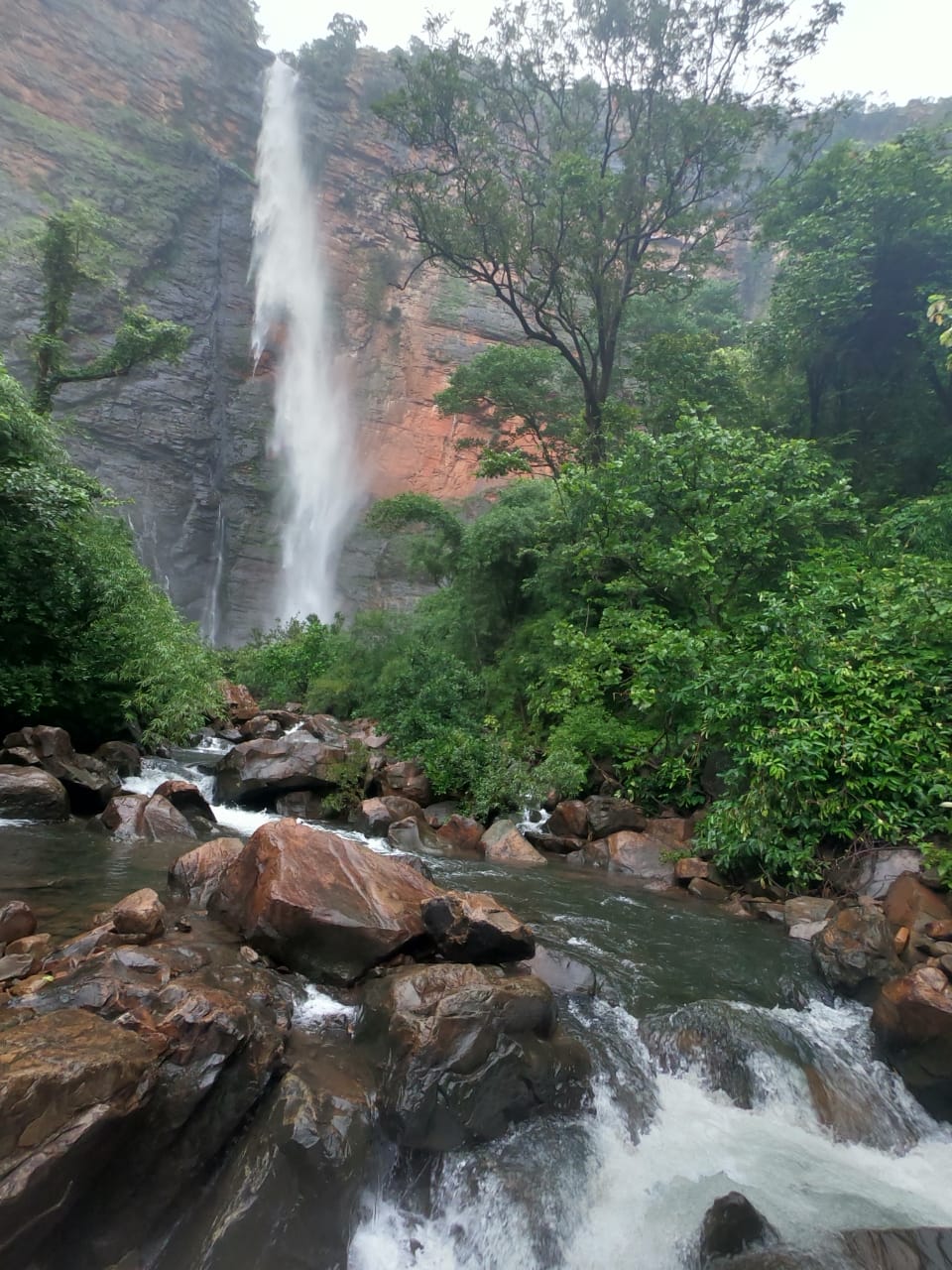 It took hardly minutes to understand that our whole plan shattered and its time to come up with a new plan (Disaster Management 🤪). All that we were able to do is click few pics of the waterfall from 5 kms away as the waterfall was visible to an extent and we decided to come the next day early in the morning even before someone arrives to stop us 🙂🙂