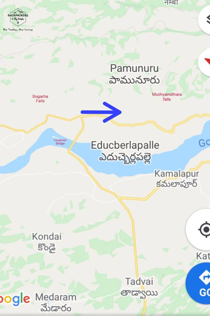 After Crossing the Godavari Bridge you will see a junction to go Bogatha Falls. Take left road which is going towards ventakapuram which is 25kms. Road till venkatapuram is in good condition.