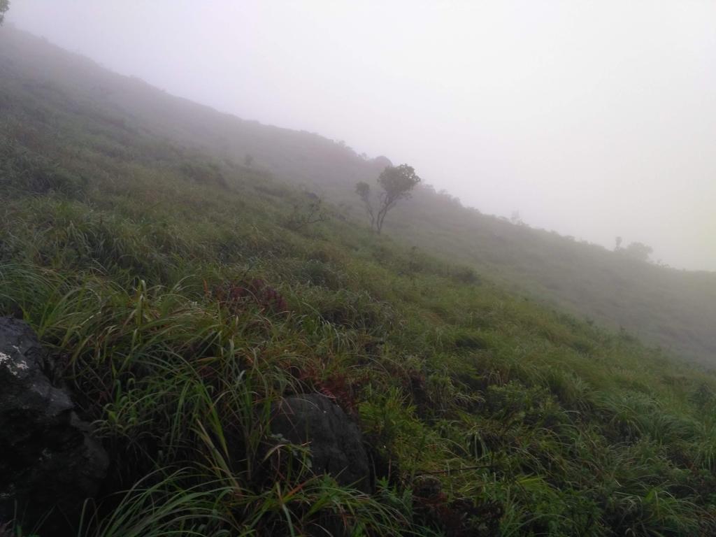 I got my much needed break at the top, when the right environment for unwinding, came from the chill winds, fog and mist enveloping us everywhere, bringing with it a sense of true happiness and belonging. The sun continuously played hide and seek and hence the verdant green forests and the contiguous mountainous topography stood barely visible. The ominous dark clouds, served a firm reminder to us, of the need for an immediate descent.