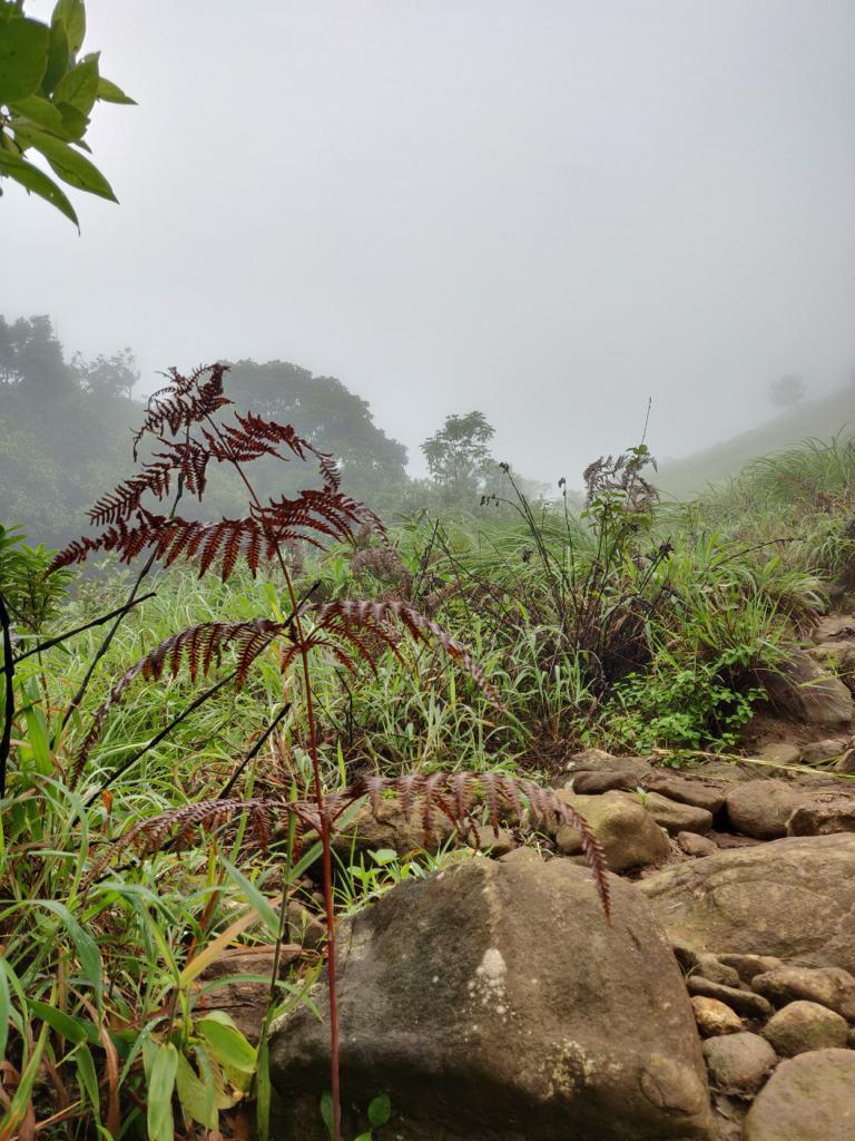 Passing through small forest patches, mild seasonal streams from the wayside minor waterfalls, as well as plantations of coffee, pepper, areca nut and cardamom, I arrive at the forest gate, 0.5km from view point, for trek permissions. The pathway beyond the landmark huge black boulder signaled the beginning of a stiff climb.