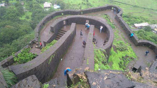 Lohagad (“Iron Fort”) is one of the many hill forts of Maharashtra state in India. Situated close to the hill station Lonavala and 52 km (32 mi) northwest of Pune, Lohagad rises to an elevation of 1,033 m (3,389 ft) above sea level[1]. The fort is connected to the neighboring Visapur fort by a small range. The fort was under the Maratha empire for the majority of the time, with a short period of 5 years under the Mughal empire.
