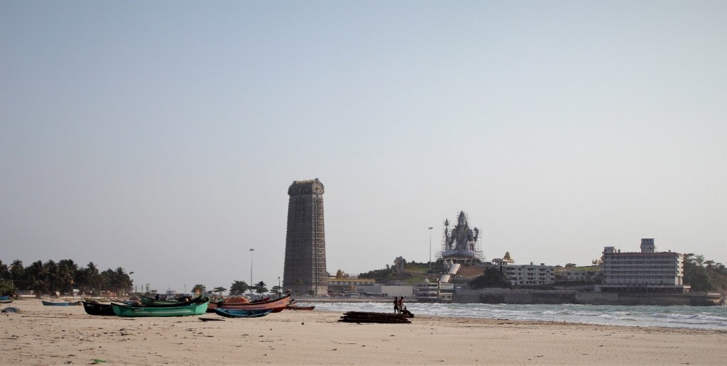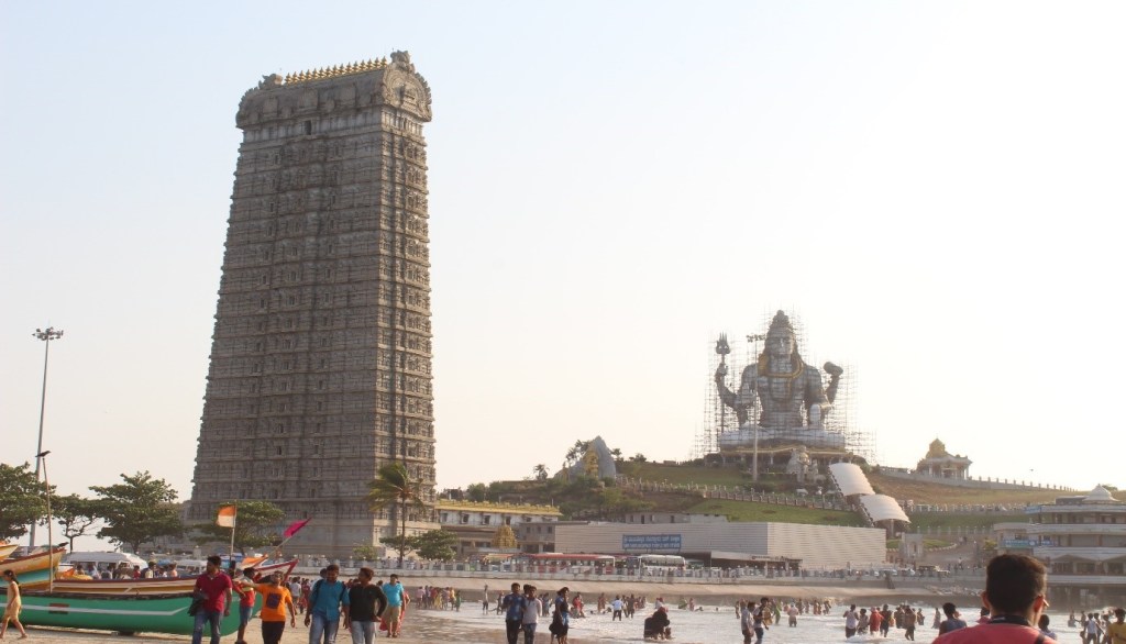 We reached Murudeshwar in the afternoon. The streets were noisy and the crowds were headed towards the beach and adjoining Shri Murudeswara temple. We were still in our savaari and I could clearly see the gigantic entrance arch of the temple and enormous structure of Lord Shiva (with utmost admiration). The architecture of the temple seemed amazing from the distance and I couldn’t wait to visit the temple. On our way, I could see the food and shopping shacks along the beach which were well maintained and selling local delicacies. I short-listed the shacks I would be visiting later.
