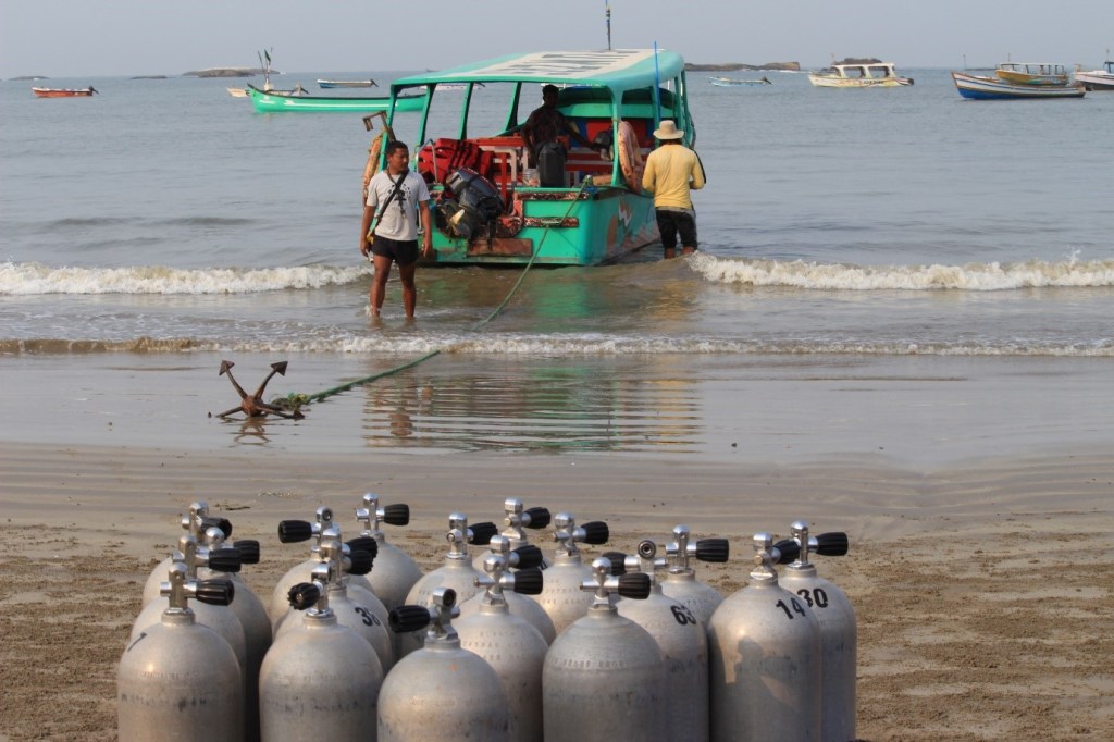 Who soaks before diving, I said with a smirk? We were told not to have a ‘heavy’ breakfast and to carry enough snacks. So, we ate less and carried more. We reached the meeting point where the instructors and dive masters along with their staff were busy loading the oxygen cylinders and other diving equipment.