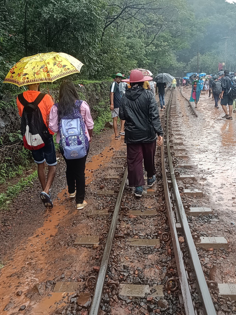 From here started trekking down along the railway track 🛤️, it was full of umbrellas, Hats, Coats and colors throughout the route and the scenic greenery which was like we were into the hills again.